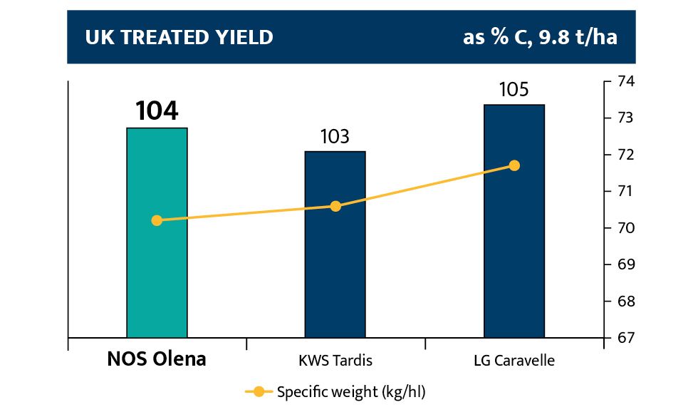 NOS Olena yields well in all regions of the UK. It has excellent resistance to lodging, low brackling, good resistance to all diseases and medium maturity...an excellent all-rounder.